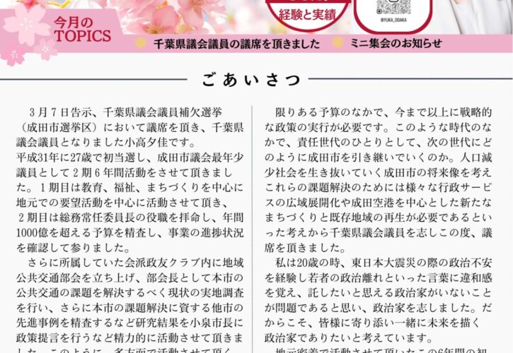 2025.05.15 お知らせ 県議会レポートVOL.1発行しました Tweet Share RSS 県議会レポートVOL.1 お知らせ 市議会報告REPORT vol.7を発行しました前の記事 県議会レポートVOL.2を発行しました。次の記事