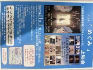 その一環として、来月にはアニメ『めぐみ』上映会と「拉致被害者御家族ビデオメッセージ」の視聴会がもりんぴあで予定されています。